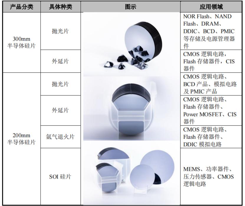 公司的主要产品包括300mm、200mm半导体硅片,以市场需求较大的P型硅片产品为主,也包括少量掺磷的N型硅片。