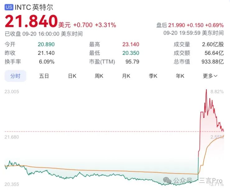今年以来,英特尔股价已经降了约60%,总市值也从年初2000多亿美元暴跌至目前900多亿美元。