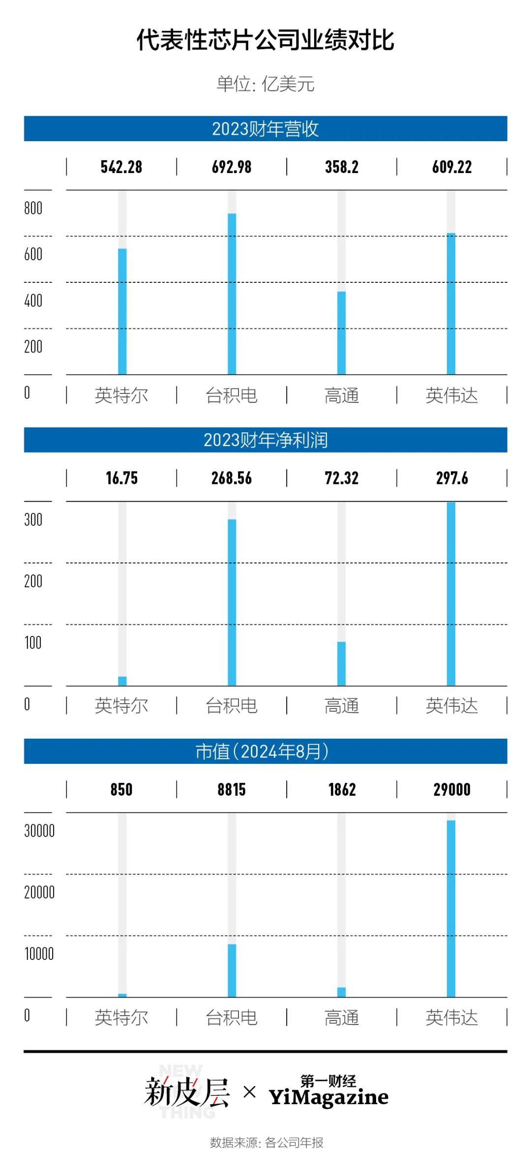 在此之前,英特尔的代工业务规模不大,远不能跟台积电相提并论——按旧的财务准则计算,2023财年,英特尔代工业务营收9.52亿美元,是台积电692.98亿美元营收规模的1/72。