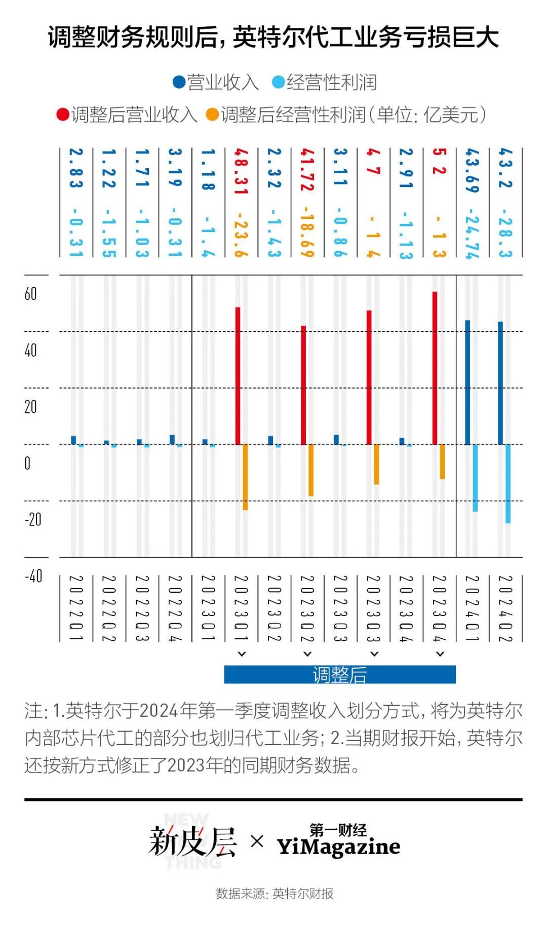 事情起源于英特尔今年4月做出的一项财报规则调整。当时,英特尔首次在财报中将包括内部代工和外部代工在内的所有代工业务独立核算,此前,英特尔财报中的代工业务从未反映过为内部订单代工时的收益水平。简单说,调整前,财报显示英特尔的代工业务亏损并不大,2023年只亏了4.82亿美元;但调整后,仅2023年上半年,亏损额就高达42.29亿美元。也就是说,英特尔的代工业务看起来并不像外界想象的那样健康,而英特尔似乎过去一直通过财务手段向它的投资者们掩盖了这一点,这激怒了投资者。