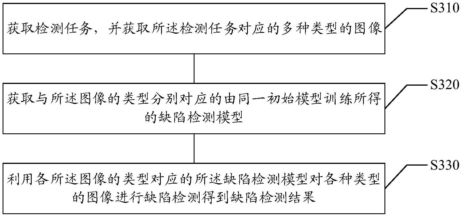 提出一种缺陷检测方法及装置、计算机可读存储介质及电子设备,方法包括:获取检测任务,并获取检测任务对应的多种类型的图像;获取与图像的类型分别对应的由同一初始模型训练所得的缺陷检测模型;利用各图像的类型对应的缺陷检测模型对各种类型的图像进行缺陷检测得到缺陷检测结果。本技术方案提高了检测效率,降低开发成本。