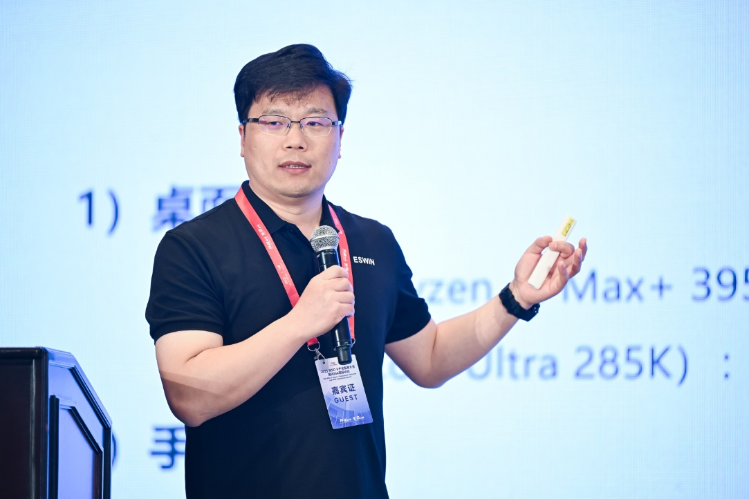 奕斯伟计算智能计算事业部AI方案生态总监李建宇发表了题为《基于RISC-V的AI SoC芯片在边缘计算场景的应用》的演讲,聚焦边缘计算场景优势与技术落地,系统阐述了边缘计算在低延迟、高安全与低成本方面的核心优势。他介绍,奕斯伟计算已清晰规划智能计算EIC77系列产品,并基于该系列产品推出包括AI加速卡、AI Box、单板计算机(SBC)及AI PC在内的多形态产品,广泛应用于智慧零售、智能理化实验、多路视频转码等边缘场景,为行业提供高集成度、高能效的RISC-V智能计算解决方案。