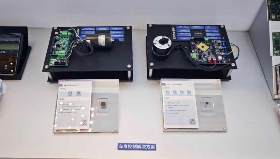 智能控制解决方案涵盖采用自研RISC-V CPU的车载通用MCU与电机专用MCU,具有丰富的外设接口、高精度实时控制、强容错与安全保障、轻量级AI应用等优势,均满足AEC-Q100 Grade 2车规标准,通过现场展出的电机控制Demo,展现了奕斯伟计算MCU产品在车身舒适系统与热管理场景的高精度控制能力。