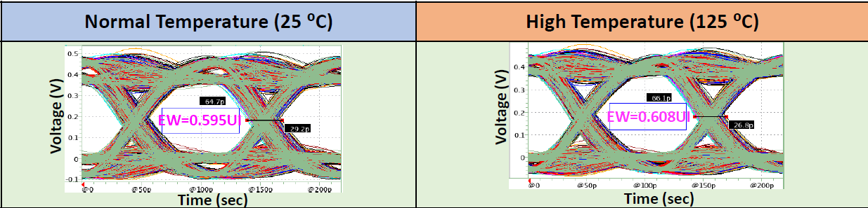 根据其与美光的合作,创意电子的相关 IP 搭配美光的 HBM3E 产品可在台积电 CoWoS-S 与 CoWoS-R 平台上实现 9.2Gbps 传输速率,同时在不同温度与电压下均能实现优异的眼图边限: