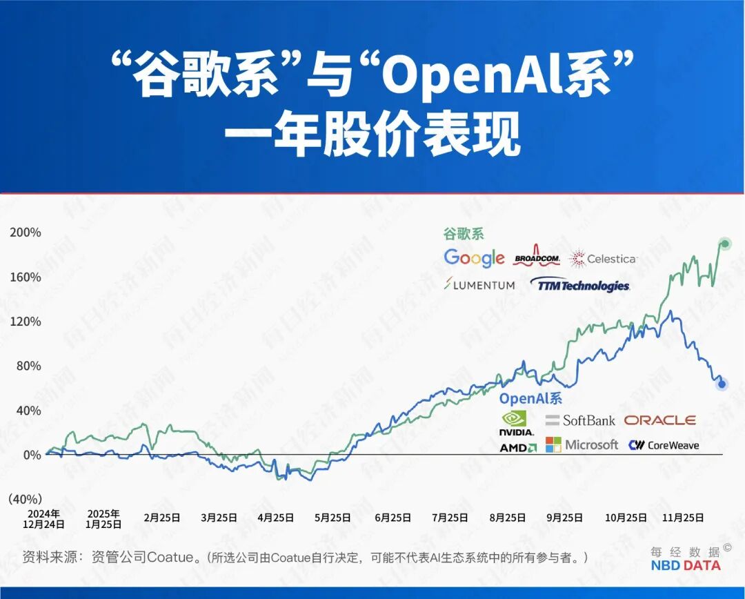 消息迅速引发产业链连锁反应:谷歌TPU联合制造商博通(负责芯片设计与供应链管理,台积电承担制造)本周股价涨超16%,其他谷歌产业链公司同步走强;而英伟达则承压明显——即便最新财报业绩远超华尔街预期,股价仍在财报次日逆势下跌,本周累跌逾2%。叠加“AI泡沫”论调和围绕OpenAI等明星公司的“循环融资”争议,英伟达股价雪上加霜。