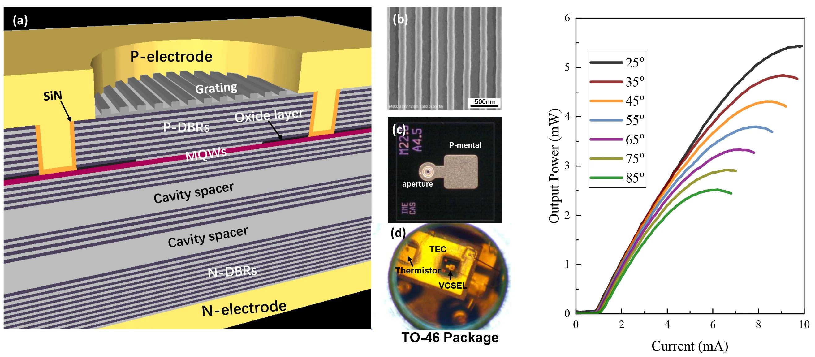 垂直腔面发射激光器(VCSELs)具有体积小、阈值电流低、波长随温度稳定、圆形光束和高可靠性等优点,是原子钟、原子磁力仪、原子陀螺仪等核心光源。但传统VCSEL的光谱线宽较宽,一般为50-100 MHz,无法与自然原子线宽(铯为5 MHz)匹配,限制了原子传感系统性能的进一步提升。