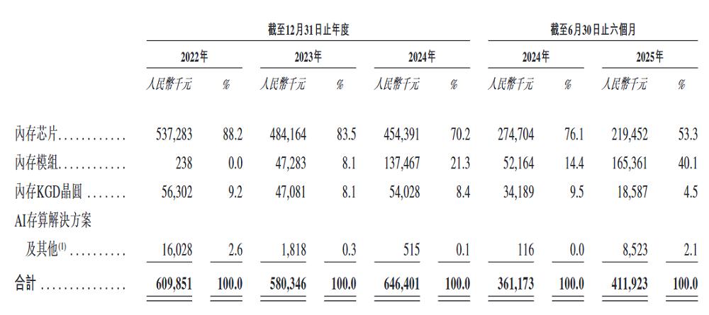 报告期内,力积存储的主要营收增量来自于内存模组销售的增加,其内存模组产品分别贡献了23.8万元、0.47亿元、1.37亿元和1.65亿元的营收,占总营收比重分别为0%、8.1%、21.3%和40.1%。