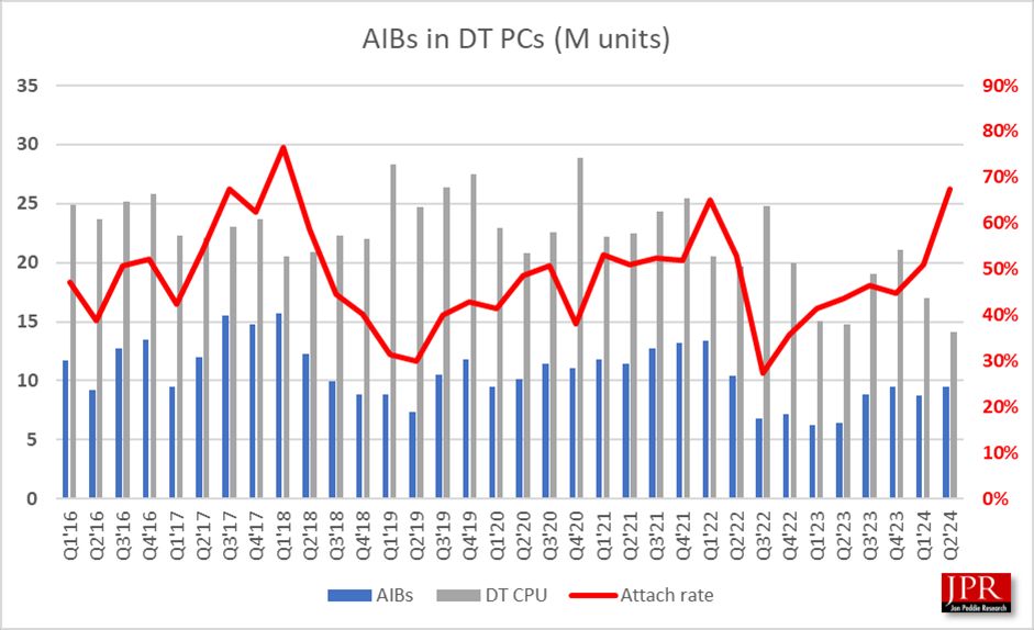 JPR 发现,本季度的 AIB 出货量环比增长了 9.4%,高于 10 年平均水平的 -7.1%。