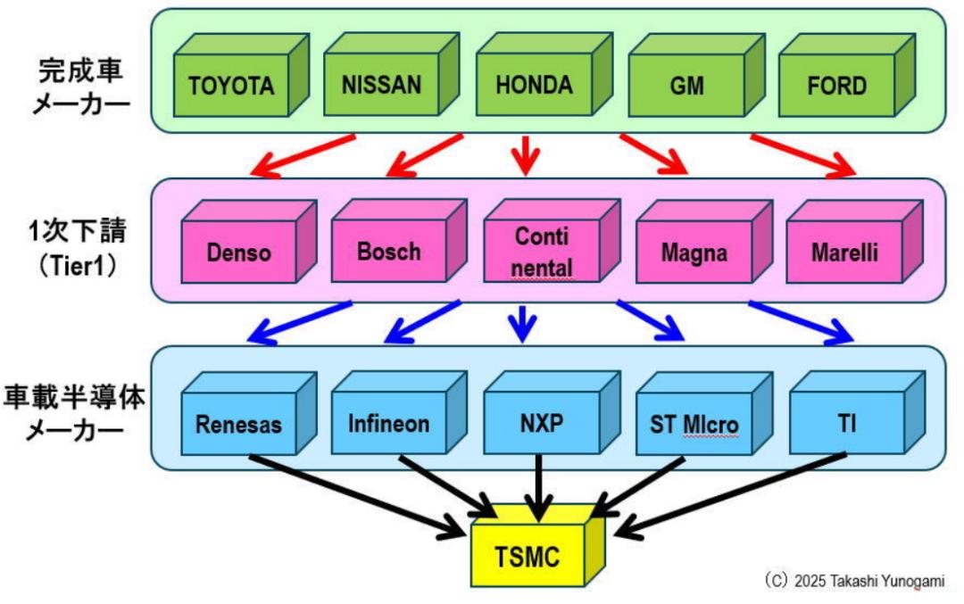 这三次危机的共同根源在于,汽车制造商仍然依赖即时制生产方式采购半导体。通过最大限度地减少库存,汽车制造商或许试图降低制造成本。然而,实际上,即使半导体供应出现轻微中断,也可能导致汽车生产完全停滞。这种情况已经发生过三次了。