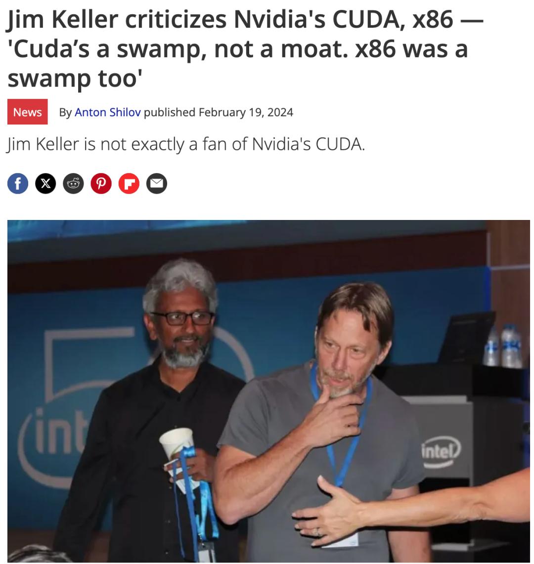 https://www.tomshardware.com/tech-industry/artificial-intelligence/jim-keller-criticizes-nvidias-cuda-and-x86-cudas-a-swamp-not-a-moat-x86-was-a-swamp-too