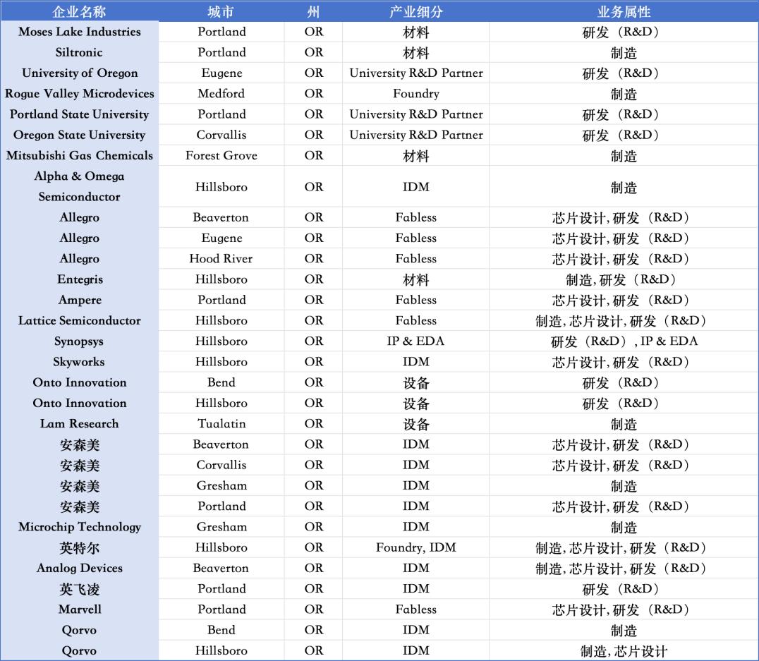 俄勒冈州半导体生态布局情况
