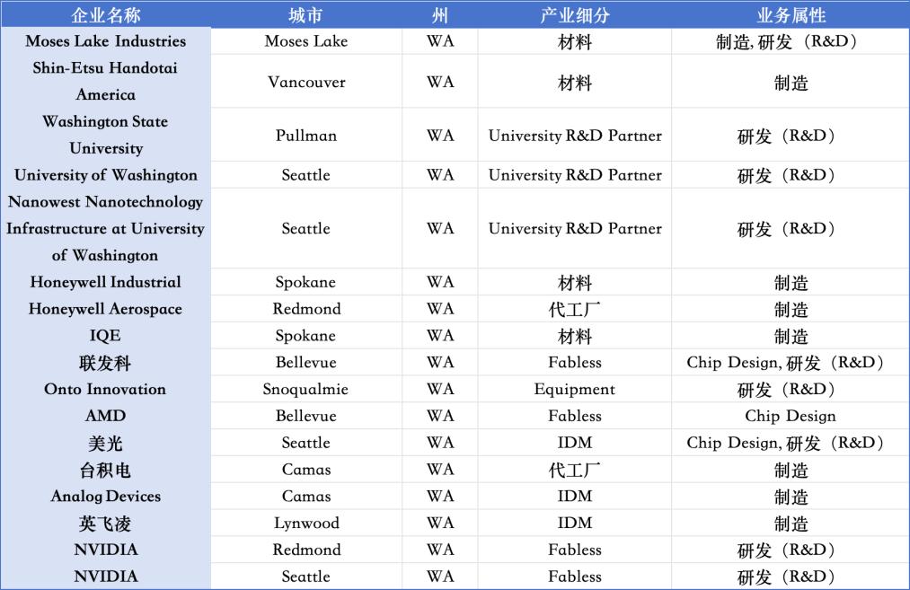 华盛顿州半导体生态布局情况