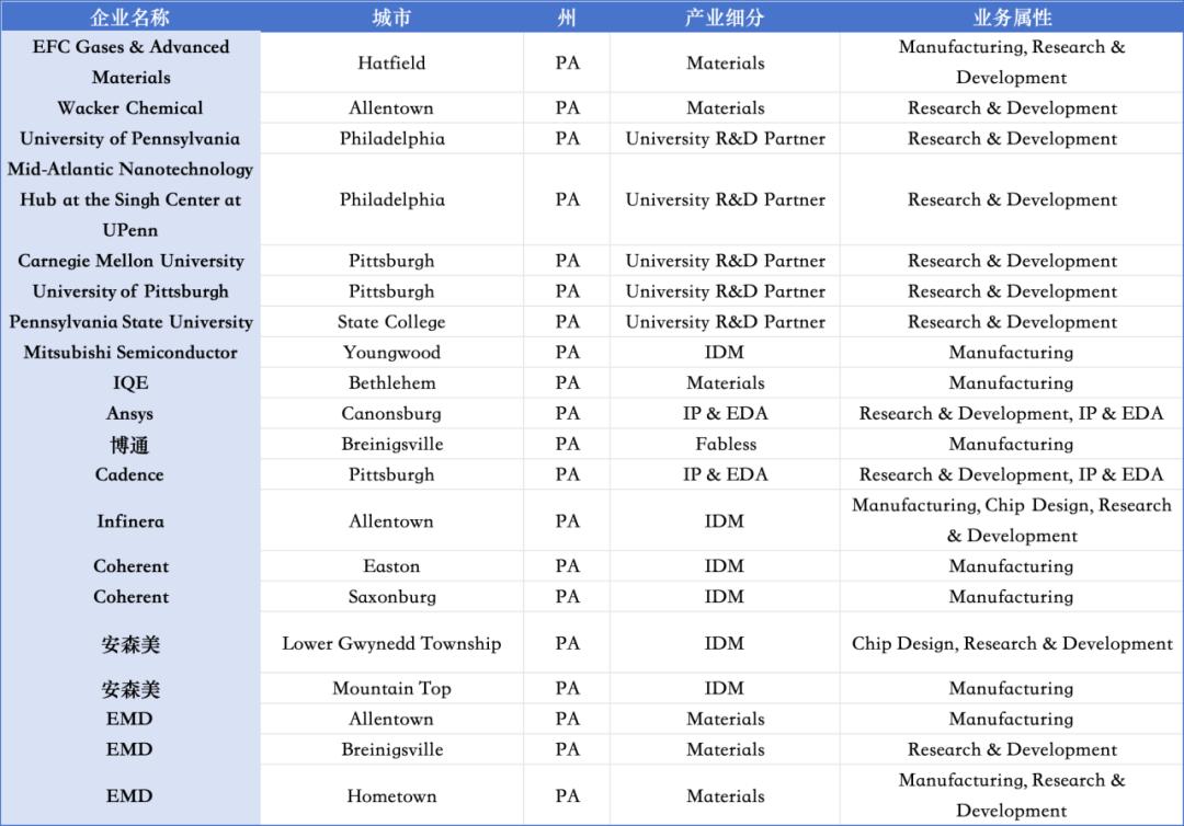 宾夕法尼亚州半导体生态布局情况