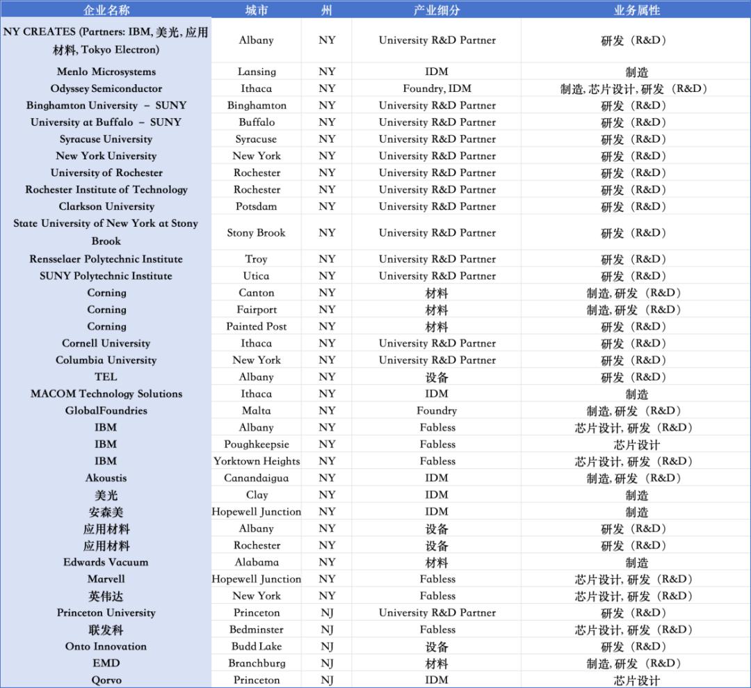 纽约州和新泽西州半导体生态布局情况