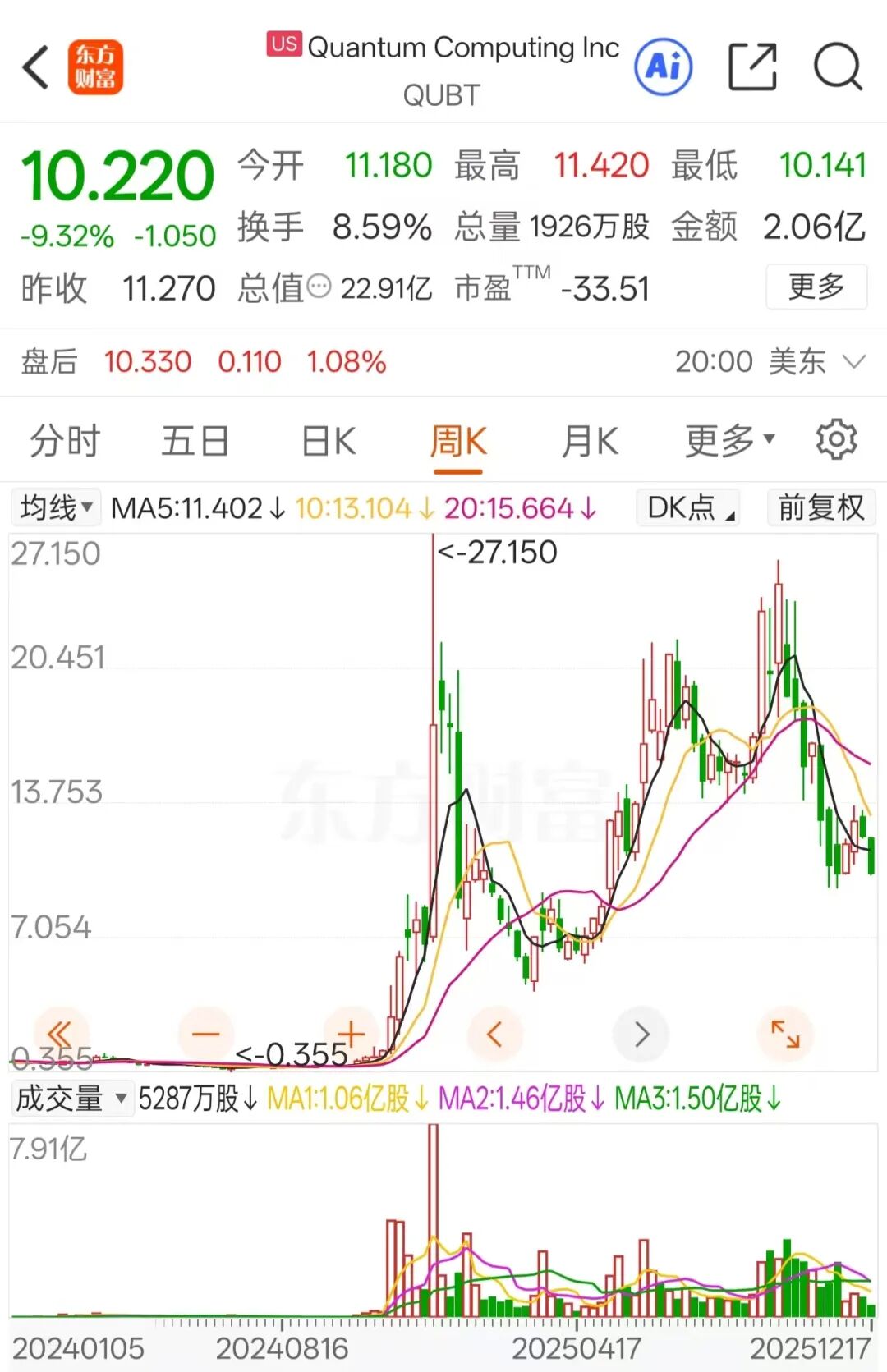 截止发稿,Quantum Computing市值为22.91亿美元。