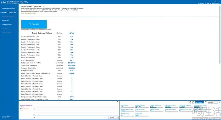其次,在13、14代酷睿的高端型号上,存在着名为“TVB(Thermal Velocity Boost)”的自动性能调控机制。正常情况下,该机制会在散热良好(CPU温度很低)的前提下,额外提升CPU的主频,以发挥更好的性能。