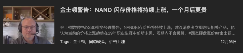 前两天,金士顿 SSD 的业务经理就在一档播客里表示: