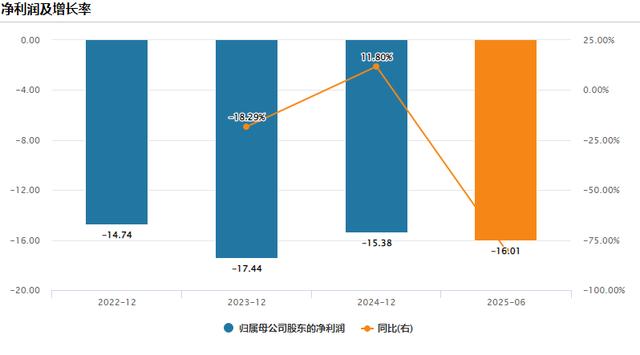 招股书显示,2022年至2025年上半年(下称“报告期”),壁仞科技累计营收仅4.58亿元,累计净利润亏损却高达63.57亿元。其中,仅2025年上半年就亏损16.01亿元。