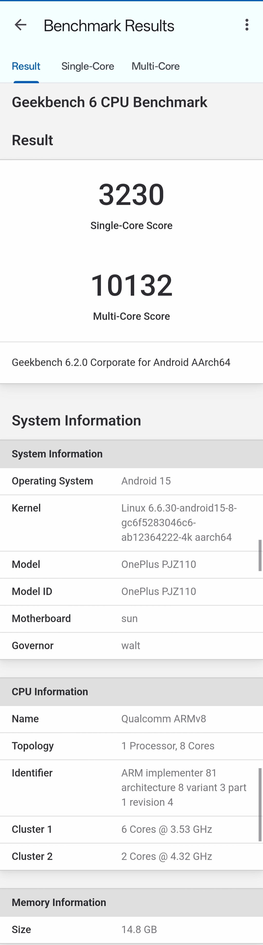 IT之家 9 月 27 日消息,一加中国区总裁李杰今日公布了一加旗舰新品的 GeekBench 6 跑分数据,单核 3230 分、多核 10132 分。