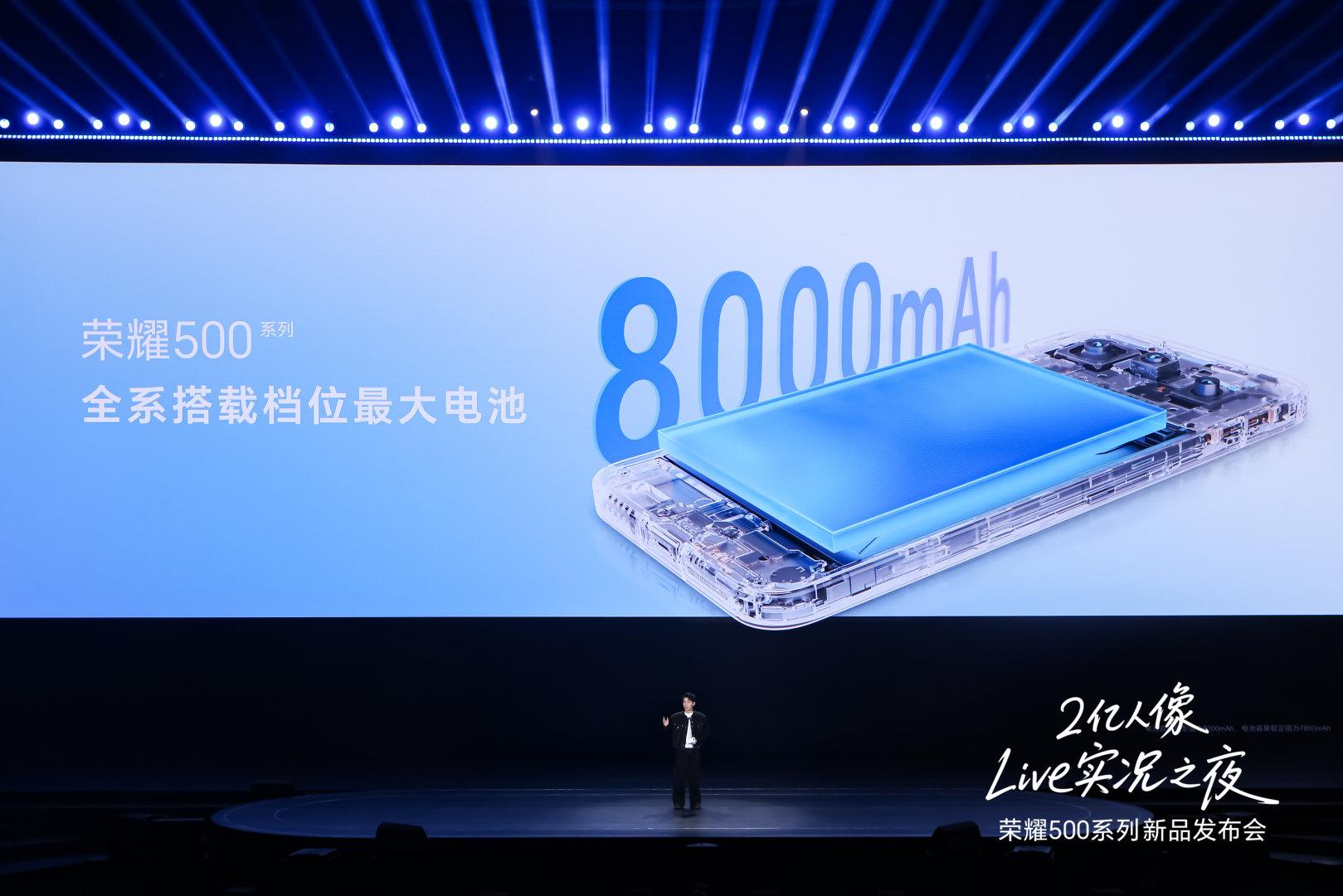 此次荣耀500系列,在前代刷新同档续航纪录的基础上,继续保持了在续航和补电方面的同档位领先(标准版搭载80W有线快充、Pro搭载80W有线快充+50W无线快充)。其采用8000mAh第三代青海湖大电池,具备15%超高硅含量以及915Wh/L超高能量密度。更难得的是,所有一切,都是在保证较为轻薄小巧的机身的前提下做到的。