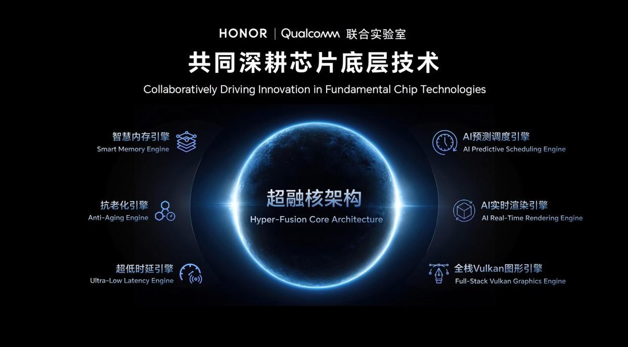 荣耀与高通在2025年联合发布的“超融核架构”便是一项深度协同创新成果,旨在通过芯片级优化提升智能手机的性能与能效。该架构将荣耀Turbo X的多个核心性能引擎与高通Oryon芯片架构进行深度融合,实现对SOC芯片微架构的资源调度管理,从而达到最优的能效和性能释放。这也是荣耀500系列为何能做到同档最强性能的主要原因。