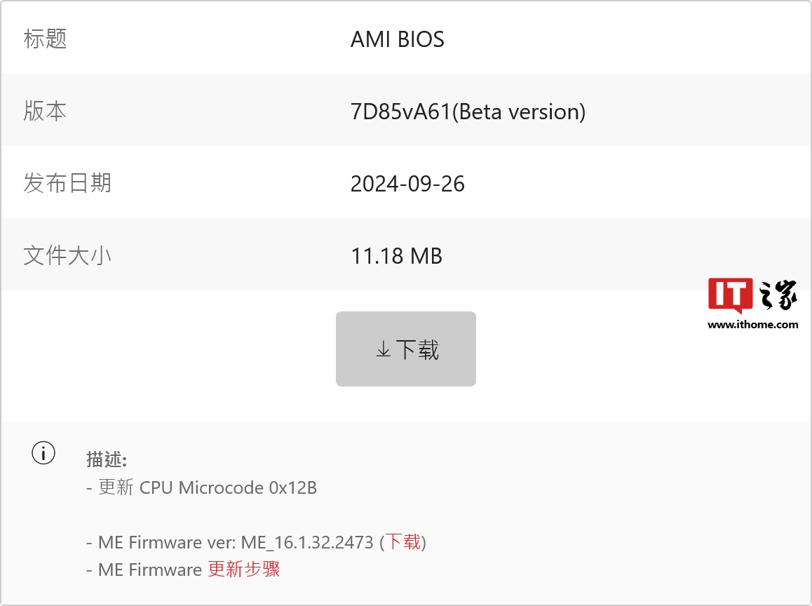 IT之家查询更新范围内的 MEG Z790 GODLIKE MAX 主板的 BIOS 下载页面,发现目前提供的含 0x12B 微代码 BIOS 仍为 Beta 测试版本: