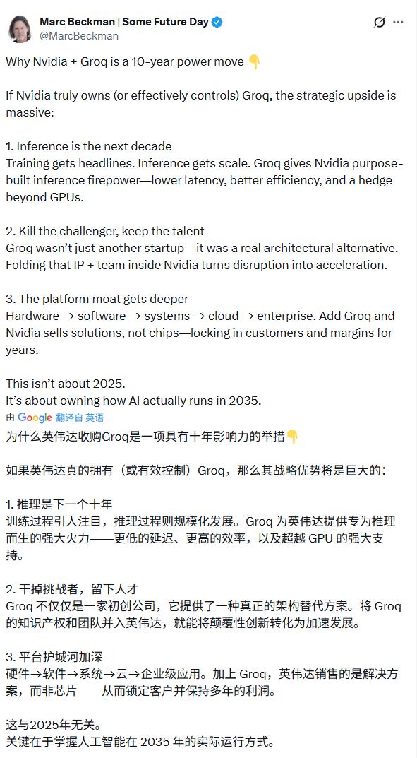 图:网友评论,英伟达获得Groq技术将影响推理领域未来十年格局