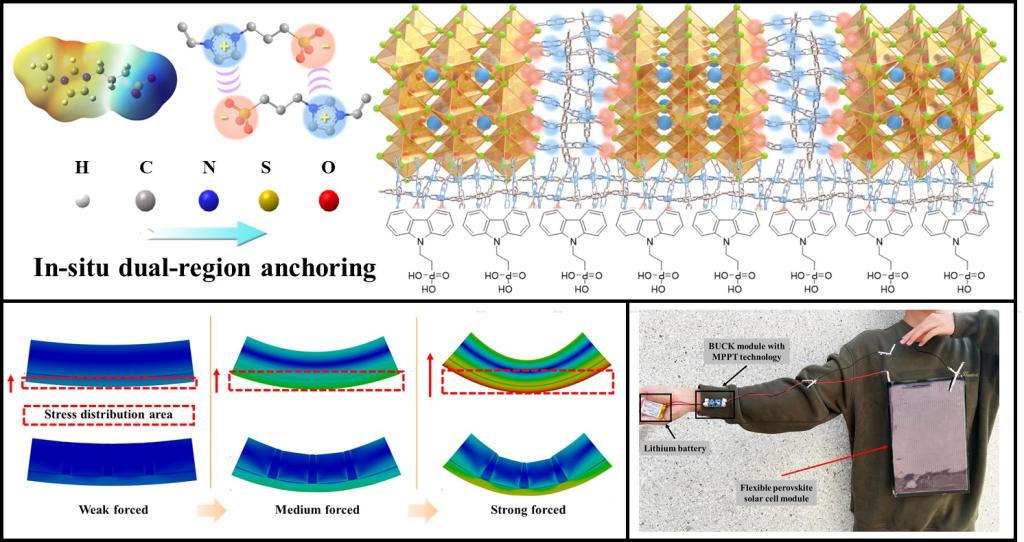 在新型清洁能源需求正从过去“有没有”的稳定供应,向更加多元化的方向跃进,柔性钙钛矿太阳能电池(f-PSCs)凭借轻质、柔性等独特优势,在可穿戴电子、车载光伏、物联网终端供电等领域展现出广阔应用前景。然而,实际应用中多样化的应力模式(动态弯曲、不同曲率静态形变等)会导致电池内部应力累积,加上规模化制备难题,严重制约了其产业化进程。