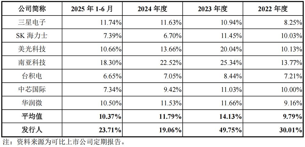 2022年、2023年、2024年、2025年1-6月,长鑫科技的综合毛利率分别为-34.25%、-112.71%、 -4.03%、5.02% ,今年上半年毛利率转正,但总体仍低于可比公司平均水平。