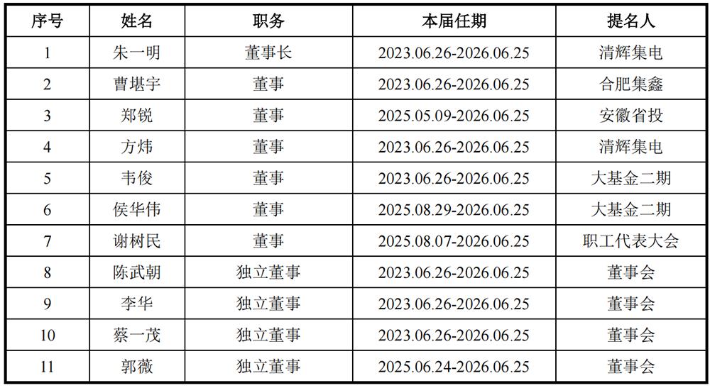 长鑫科技董事会由11名成员构成,其中独立董事4名。