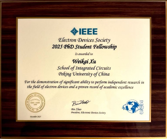 2.北京大学集成电路学院博士生徐伟凯荣获2025年IEEE电子器件协会全球博士生奖学金