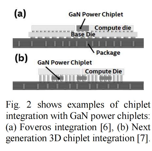 本文展示了实现基于 300mm 硅基 GaN 工艺的 GaN Chiplet技术所需的技术要素。图 2 展示了 GaN Chiplet集成的示例。