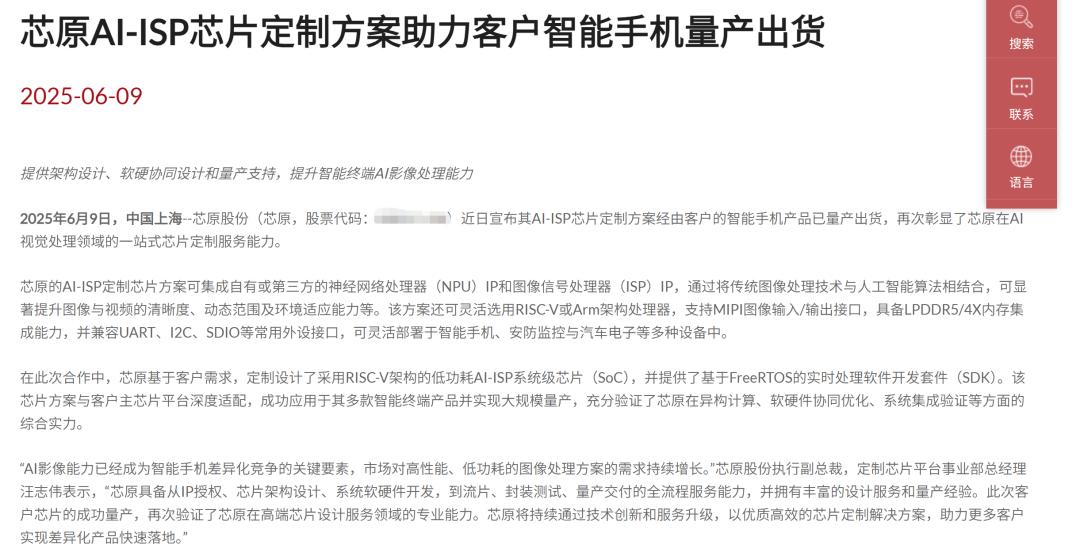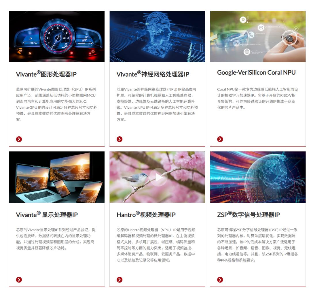 芯原微跟逐点一样,也是一家芯片设计公司,他们可以给你提供 GPU、NPU、DSP 以及 NPU 等芯片的 IP 设计方案,甚至能按照你的需求定制芯片。
