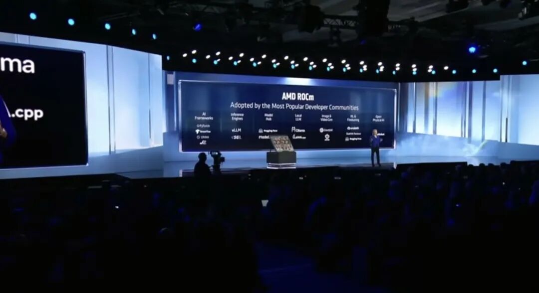 在软件层面,苏姿丰称AMD ROCm是业界性能最高的AI开放软件堆栈,每月下载量超多一亿次。