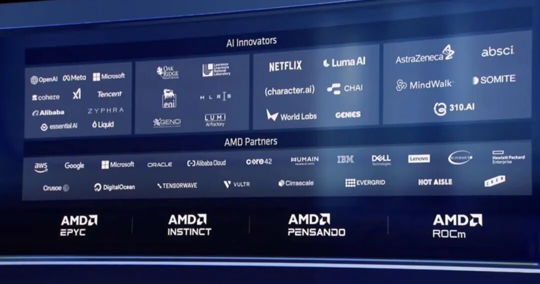 ▲AMD董事会主席兼CEO苏姿丰(Lisa Su)、Woeld Labs联合创始人兼CEO李飞飞、OpenAI联合创始人兼总裁格雷格·布罗克曼(Greg Brockman)Luma AI首席执行官兼联合创始人阿米特·贾因(Amit Jain)、Liquid AI CEO拉明·哈萨尼(Ramin Hasani)(从左至右)