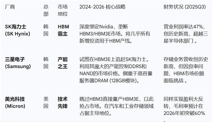 在供给侧,面对AI需求的爆发,全球内存巨头纷纷调整产能战略,将资源向高利润的HBM和DDR5产品倾斜。
