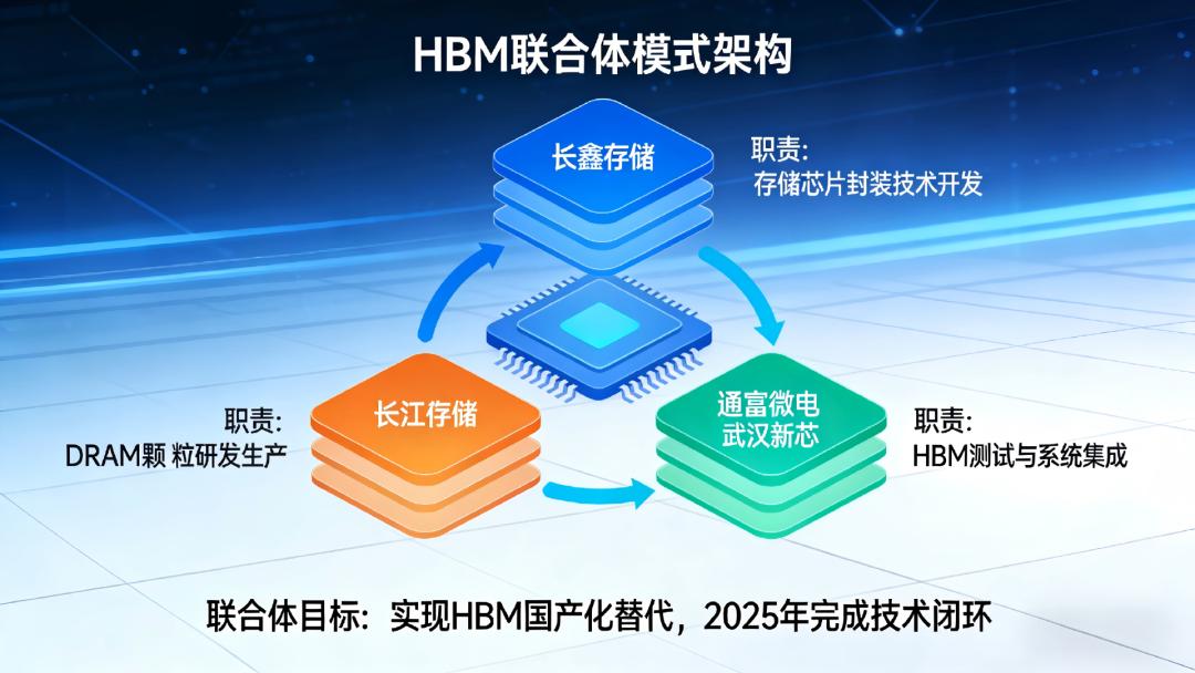几个国产巨头现在就在这块发力,长鑫存储负责制造基础的内存颗粒,长江存储贡献垂直堆叠技术,通富微电 / 武汉新芯,负责封装。