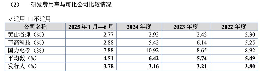 同期,同行业可比公司研发费用率的平均数则分别为5.49%、5.74%、6.42%及4.51%,均高于赛英电子的各期研发费用率。