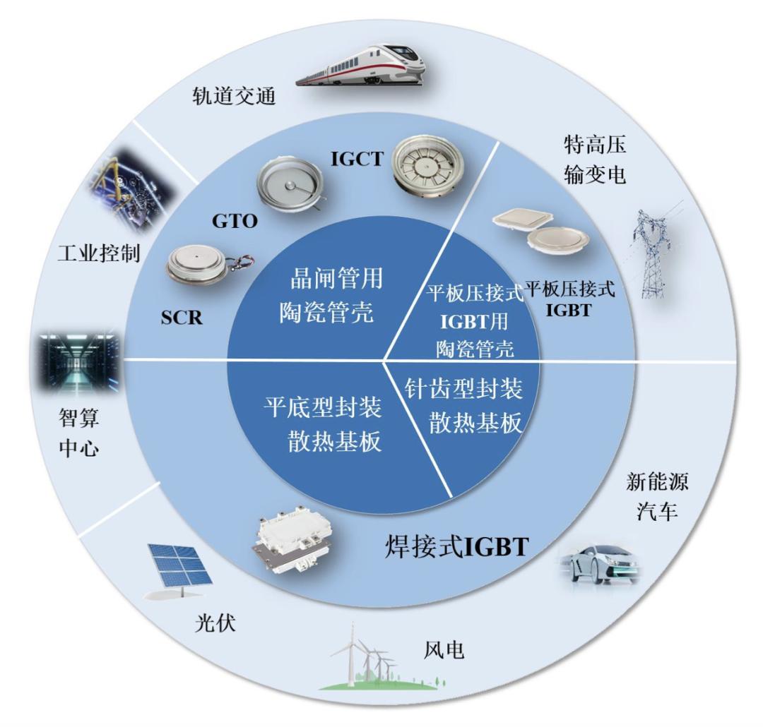 赛英电子的主营业务由两大板块构成,分别是陶瓷管壳及配件、封装散热基板,主要产品直接应用于晶闸管、IGBT、IGCT等功率半导体器件中,在发电、输电、变电、配电、用电等电力能源行业全链条环节中扮演重要角色,应用范围覆盖 特高压输变电、新能源发电、工业控制、新能源汽车、智算中心、轨道交通等领域。