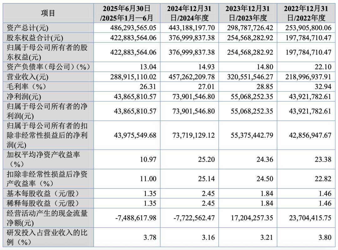 赛英电子的招股书披露,2022年和2023年,公司的经营现金流净额分别为2370.44万元、1720.43万元。2024年和2025年上半年,公司的经营现金流净额则转负,分别为-772.26万元和-748.86万元。