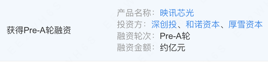C114讯 1月9日消息(南山)据企查查更新数据,珠海映讯芯光科技有限公司完成Pre-A轮融资,融资额近亿人民币。本轮融资由深创投集团领投。