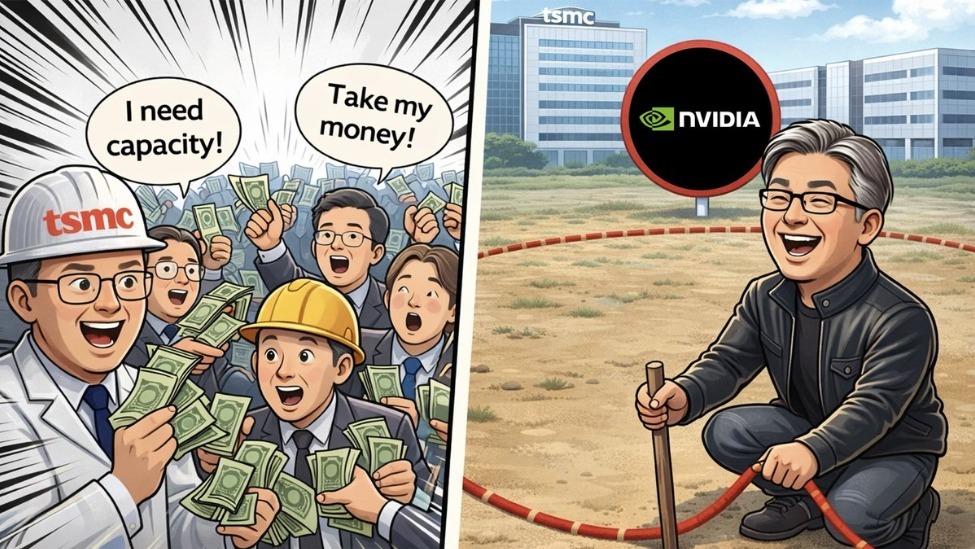 他透露,一般客户和台积电谈的是包产能,Nvidia CEO黄仁勋和台积电谈的是包地。去年11月,黄仁勋到台南向台积电提出“愿意掏钱包下Fab 18旁的P10与P11预定用地”的要求。当时台积电Fab 18较为明确的厂区规划只有P1-P9,黄仁勋的目标是争取包下P12用地。