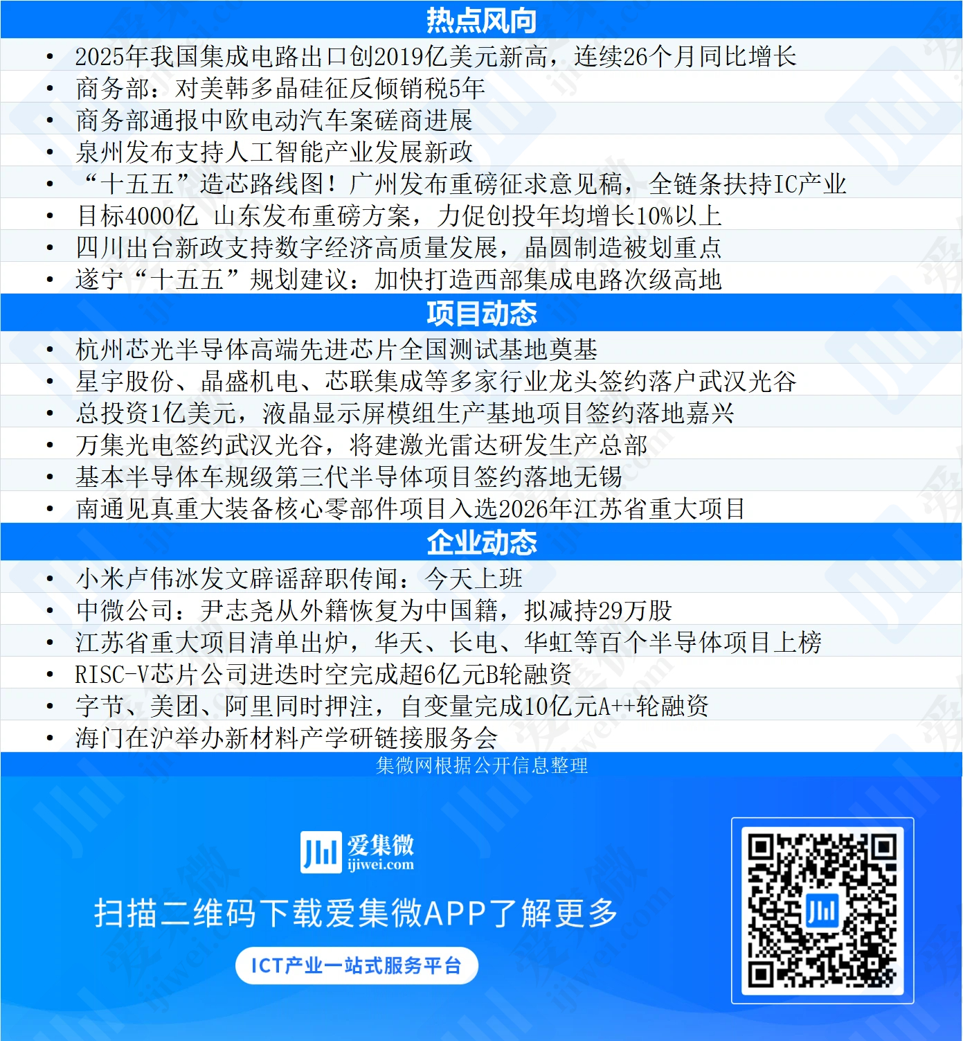 4.一周动态:我国集成电路出口创新高;中微公司董事长恢复中国籍 小米卢伟冰发文辟谣辞职传闻(1月9日-1月15日)