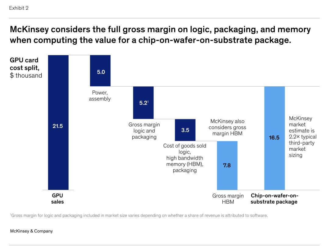 在我们的分析中,我们将包括HBM在内的整个CoWoS封装的价值归于无晶圆厂公司。我们对软件也采用了不同的方法:传统的分析师估算会从毛利润中扣除一部分以计入图形处理器(GPU)捆绑的软件,而我们的方法则保留全部毛利润(见图表2)。