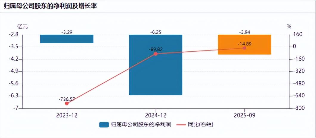 资金紧张的局面在公司运营中已有体现。Wind数据显示,2023年至2025年前三季度,公司归母净利润已累计亏损约13.48亿元。