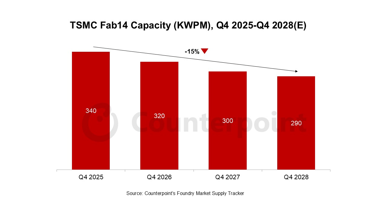 1月22日,市调机构Counterpoint Research在报告中指出,台积电预计将在2028年前将Fab14工厂12英寸成熟工艺节点的产能削减15%-20%,主要目的是解决传统工艺节点产能利用率低下的问题,同时释放资源以支持先进封装技术的拓展。