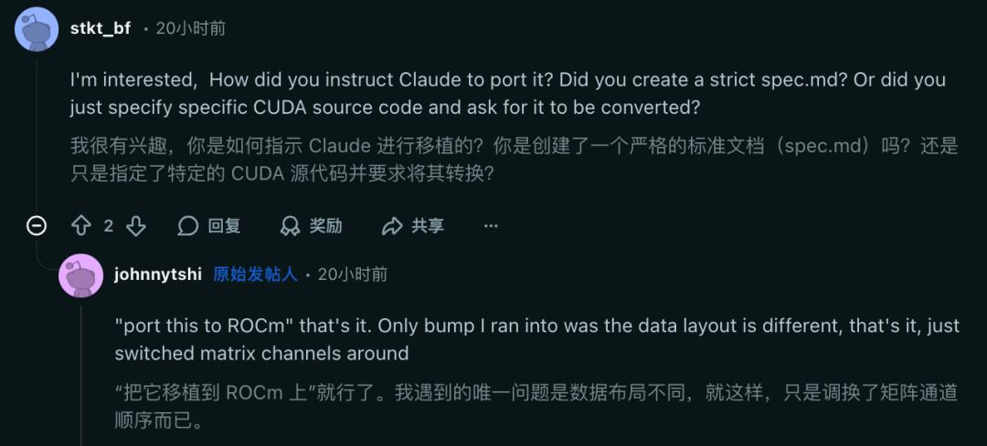 现在,一个Claude却用极短时间踢碎了门槛,说不定未来更多CUDA代码可能轻松在AMD GPU跑起来了。