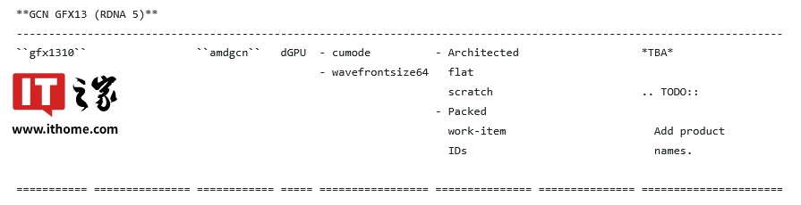 IT之家 1 月 24 日消息,消息人士 (@Kepler_L2) 发现,LLVM 编译器基础设施的代码库已获得有关 AMD gfx1310 GPU 的初步更新。