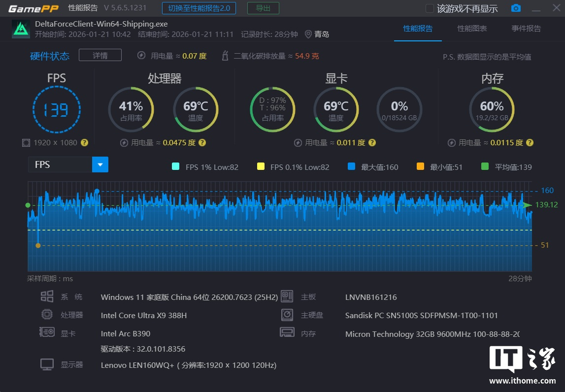 考虑到酷睿 Ultra X9 处理器 388H 不错的能效表现,我更期待它在掌机产品上的发挥。毕竟目前所有测试还是基于 1200P 分辨率 + 低画质,在消费者实际使用中只解决了流畅游玩这个问题,如果要充分利用联想小新 16 GT 这块 2K 高分大屏的显示效果,我觉得至少在 1200P 高画质下也能拥有较高的游戏平均帧数和 1% Low,这就要看 intel 的后期优化是否给力了。