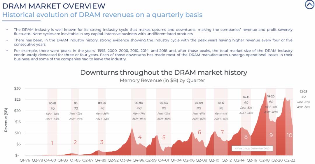 此后数十年,全球DRAM格局历经韩国厂商崛起、行业整合,最终形成了三星、SK海力士、美光三大巨头垄断95%以上市场份额的寡头格局。